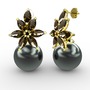 Siyah inci ve dumanlı kuvars 14 ayar altın küpe