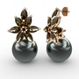 Siyah inci ve dumanlı kuvars 8 ayar rose altın küpe