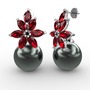 Siyah inci ve garnet 925 ayar gümüş küpe
