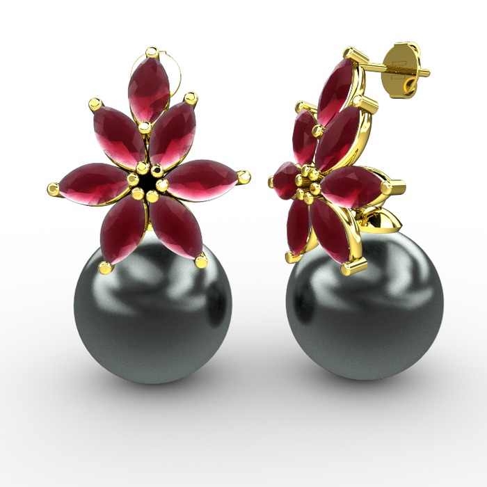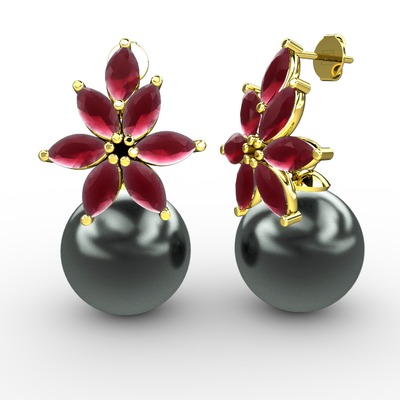 Siyah inci ve kök yakut 925 ayar altın kaplama gümüş küpe