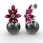Siyah inci ve rodolit garnet 8 ayar beyaz altın küpe