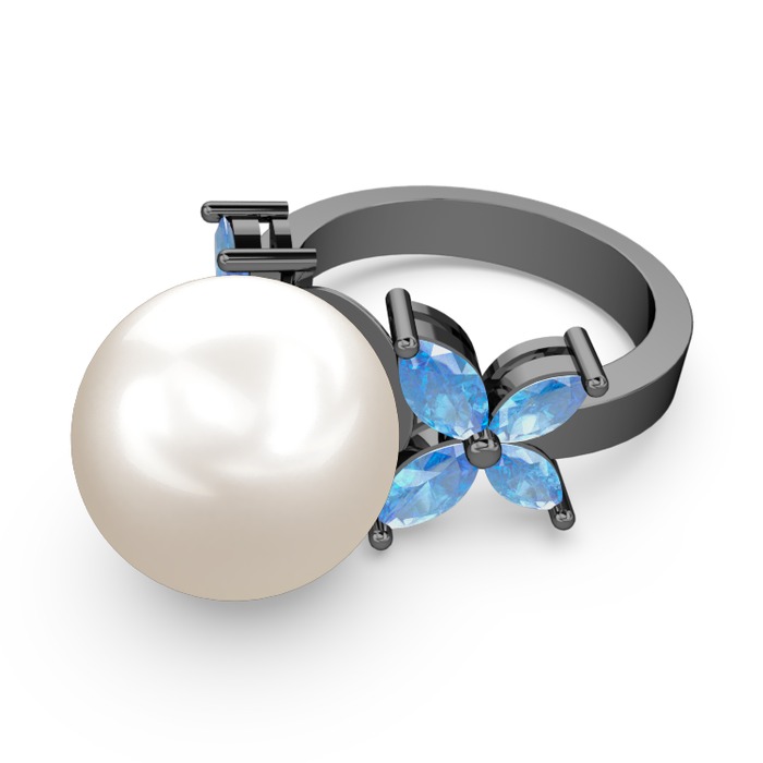 Inci ve akuamarin 925 ayar siyah rodyum kaplama gümüş yüzük