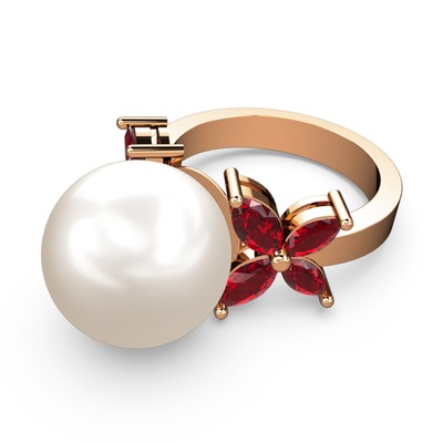 Inci ve garnet 925 ayar rose altın kaplama gümüş yüzük