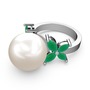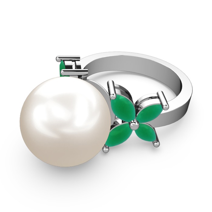 Inci ve kök zümrüt 18 ayar beyaz altın yüzük