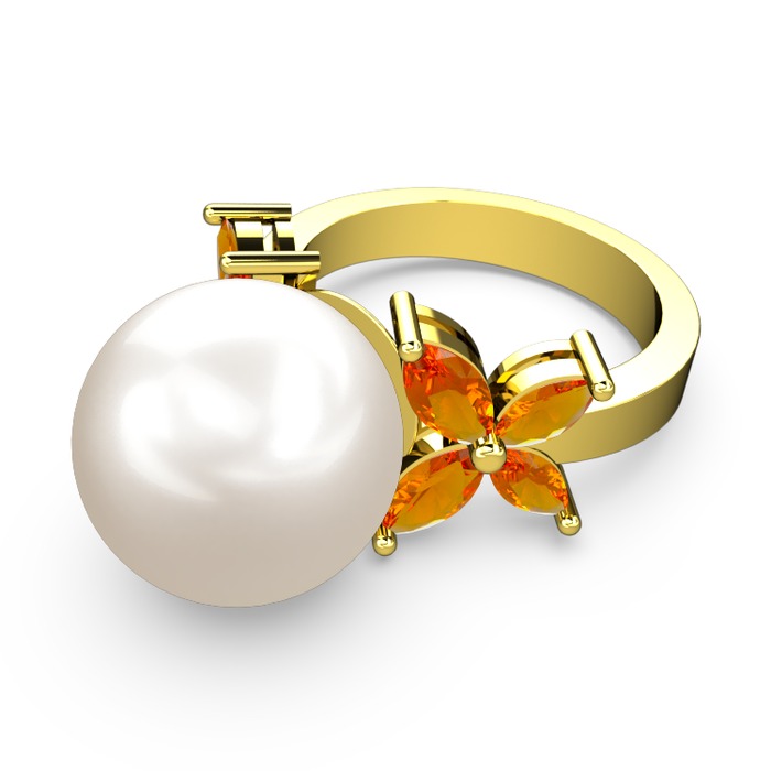 Inci ve sitrin 925 ayar altın kaplama gümüş yüzük
