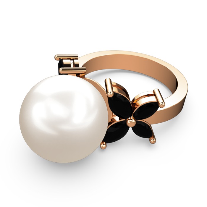 Inci ve siyah zirkon 18 ayar rose altın yüzük