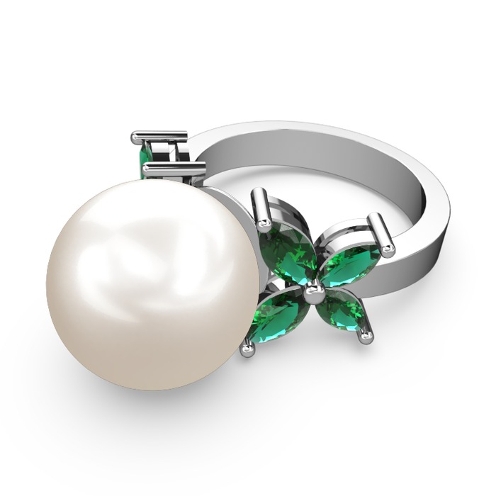 Inci ve yeşil kuvars 8 ayar beyaz altın yüzük