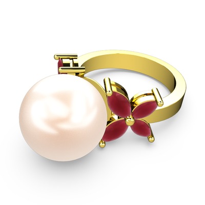 Pembe inci ve kök yakut 18 ayar altın yüzük