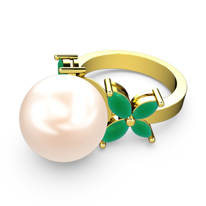 Pembe inci ve kök zümrüt 925 ayar altın kaplama gümüş yüzük