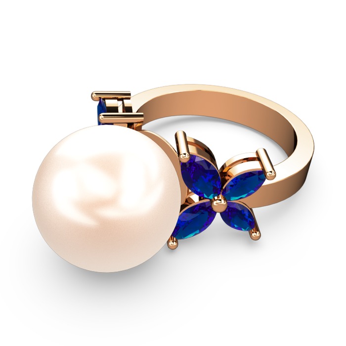 Pembe inci ve lab safir 8 ayar rose altın yüzük
