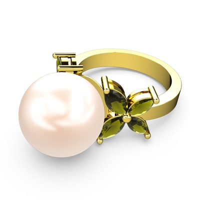 Pembe inci ve peridot 925 ayar altın kaplama gümüş yüzük