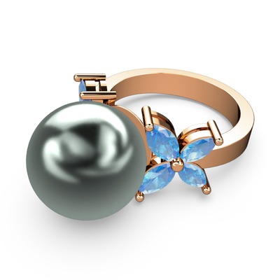 Siyah inci ve akuamarin 925 ayar rose altın kaplama gümüş yüzük