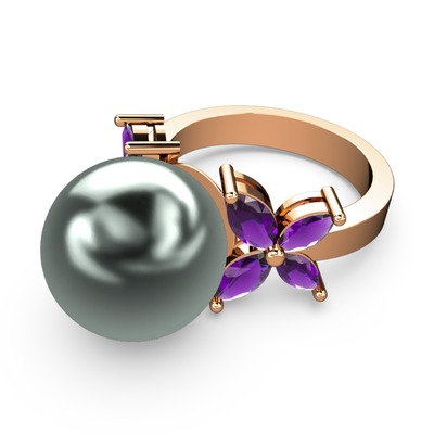 Siyah inci ve ametist 18 ayar rose altın yüzük