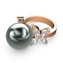 Siyah inci ve beyaz zirkon 14 ayar rose altın yüzük