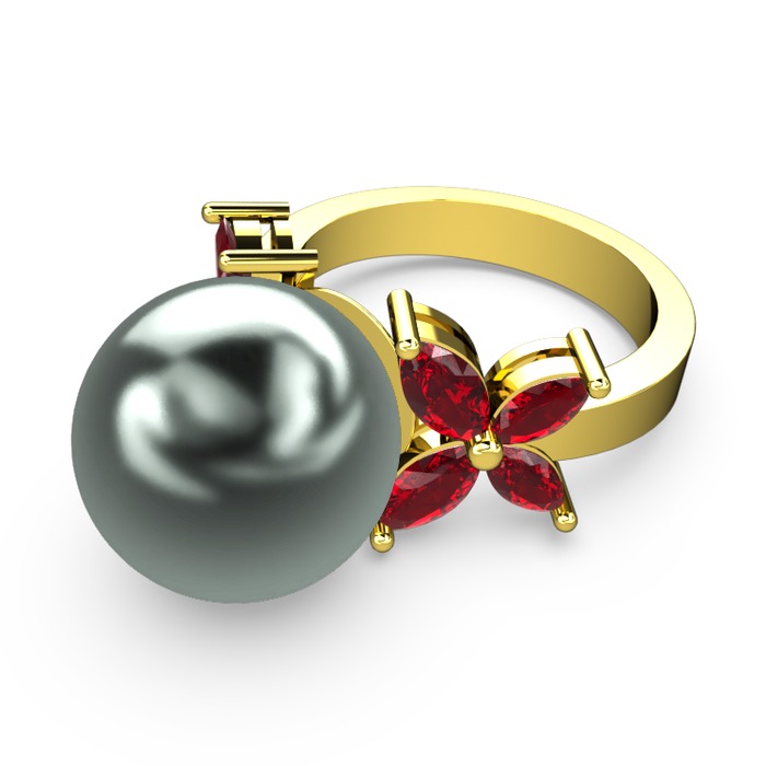 Siyah inci ve garnet 8 ayar altın yüzük