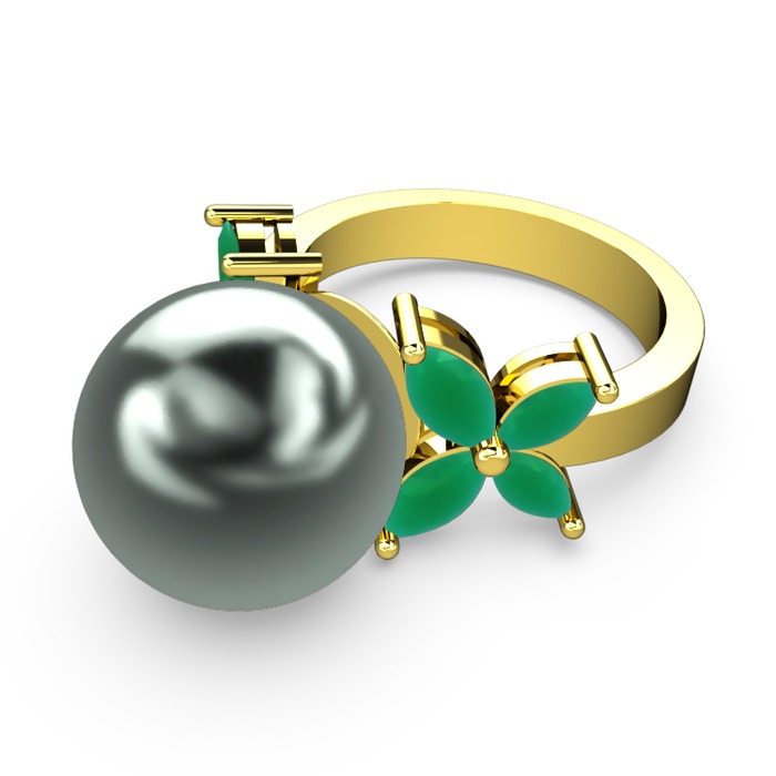 Siyah inci ve kök zümrüt 925 ayar altın kaplama gümüş yüzük