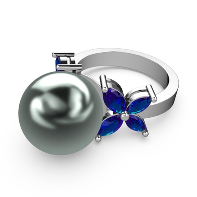 Siyah inci ve lab safir 8 ayar beyaz altın yüzük