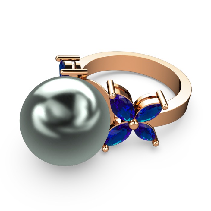 Siyah inci ve lab safir 925 ayar rose altın kaplama gümüş yüzük
