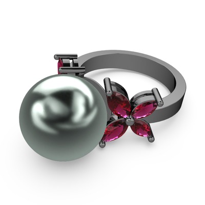 Siyah inci ve rodolit garnet 925 ayar siyah rodyum kaplama gümüş yüzük