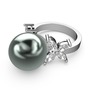 Siyah inci ve swarovski 18 ayar beyaz altın yüzük