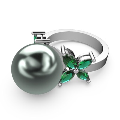 Siyah inci ve yeşil kuvars 18 ayar beyaz altın yüzük