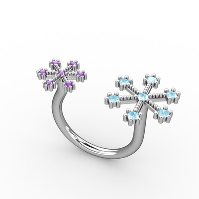 Akuamarin ve ametist 925 ayar gümüş yüzük