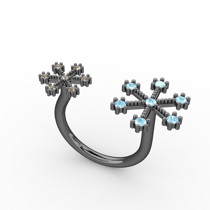 Akuamarin ve dumanlı kuvars 925 ayar siyah rodyum kaplama gümüş yüzük