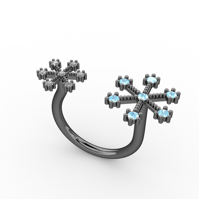 Akuamarin ve swarovski 925 ayar siyah rodyum kaplama gümüş yüzük