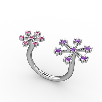 Ametist ve rodolit garnet 8 ayar beyaz altın yüzük
