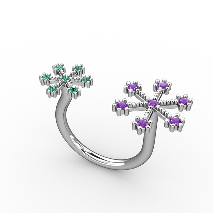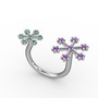 Ametist ve yeşil kuvars 18 ayar beyaz altın yüzük