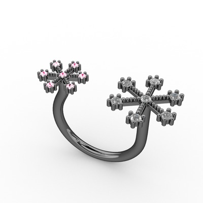 Beyaz zirkon ve pembe kuvars 925 ayar siyah rodyum kaplama gümüş yüzük