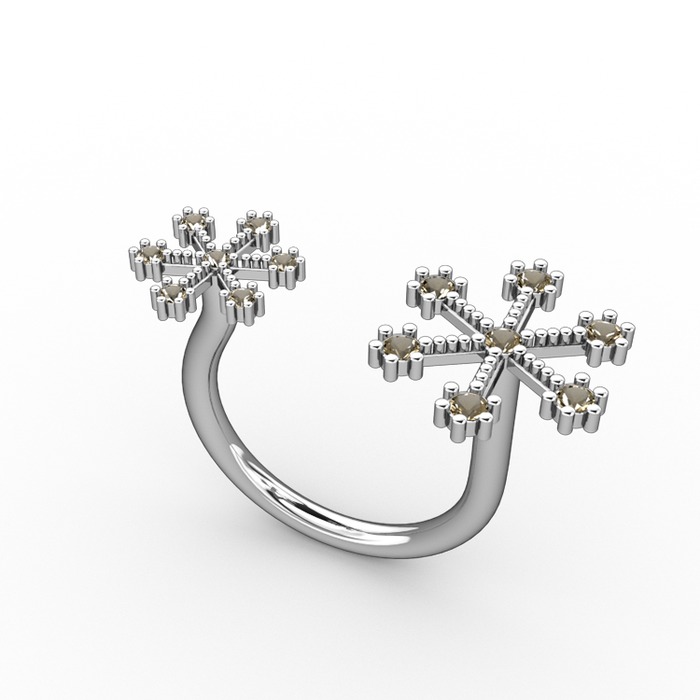 Dumanlı kuvars 8 ayar beyaz altın yüzük