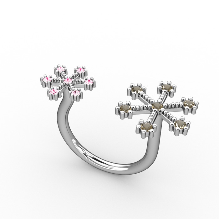 Dumanlı kuvars ve pembe kuvars 8 ayar beyaz altın yüzük