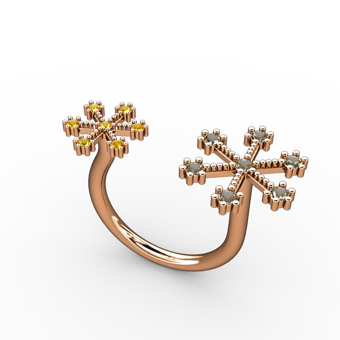 Dumanlı kuvars ve sitrin 18 ayar rose altın yüzük