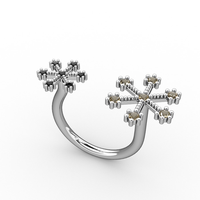 Dumanlı kuvars ve siyah zirkon 14 ayar beyaz altın yüzük