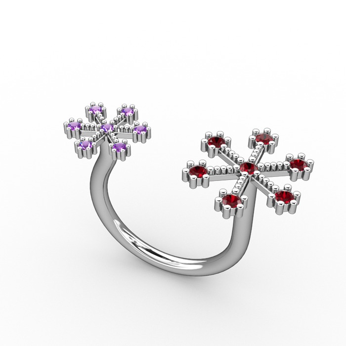 Garnet ve ametist 14 ayar beyaz altın yüzük
