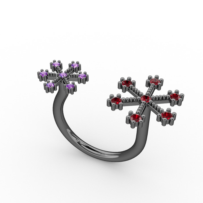 Garnet ve ametist 925 ayar siyah rodyum kaplama gümüş yüzük