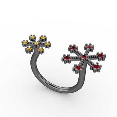 Garnet ve sitrin 925 ayar siyah rodyum kaplama gümüş yüzük