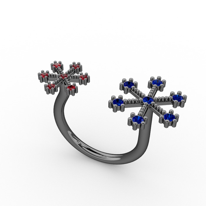 Lab safir ve garnet 925 ayar siyah rodyum kaplama gümüş yüzük