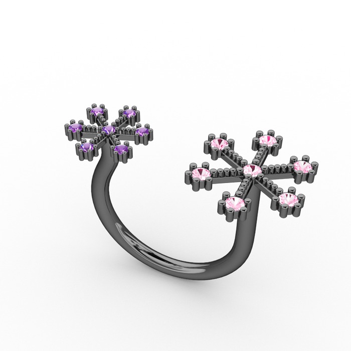 Pembe kuvars ve ametist 925 ayar siyah rodyum kaplama gümüş yüzük