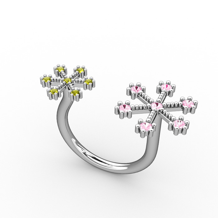 Pembe kuvars ve peridot 18 ayar beyaz altın yüzük