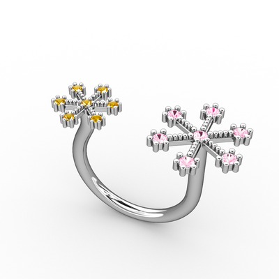 Pembe kuvars ve sitrin 18 ayar beyaz altın yüzük