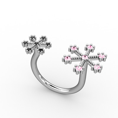 Pembe kuvars ve siyah zirkon 18 ayar beyaz altın yüzük