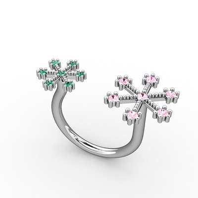 Pembe kuvars ve yeşil kuvars 8 ayar beyaz altın yüzük