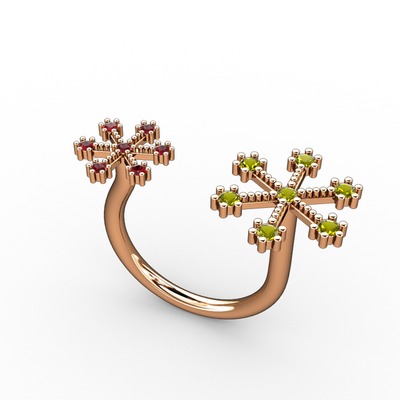 Peridot ve garnet 925 ayar rose altın kaplama gümüş yüzük