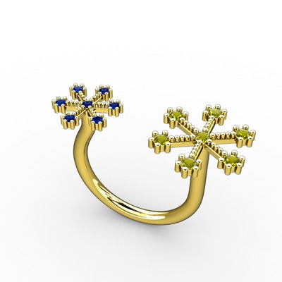Peridot ve lab safir 18 ayar altın yüzük
