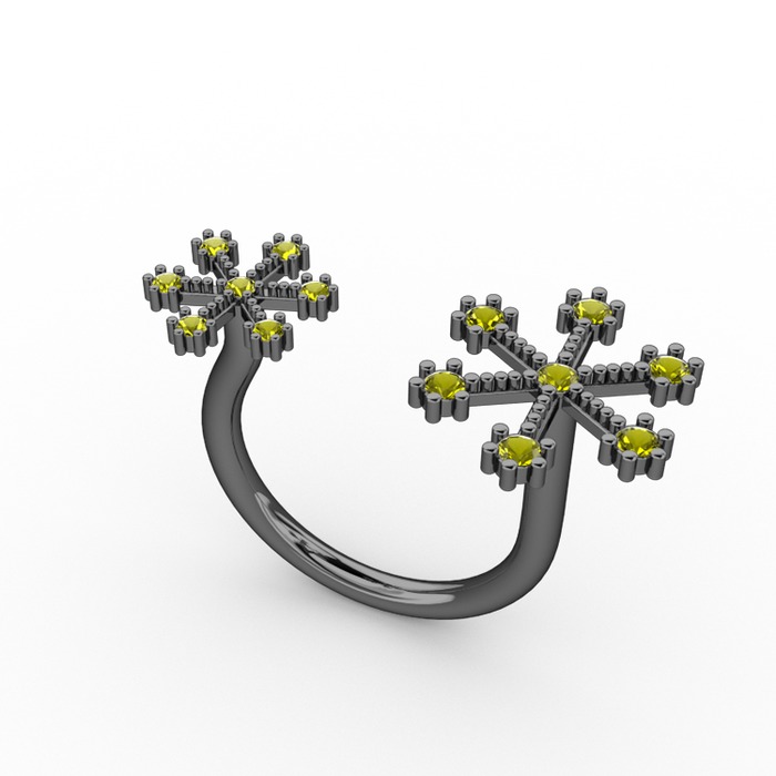 Peridot 925 ayar siyah rodyum kaplama gümüş yüzük