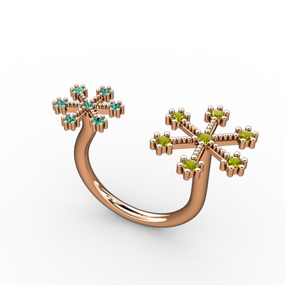 Peridot ve yeşil kuvars 14 ayar rose altın yüzük