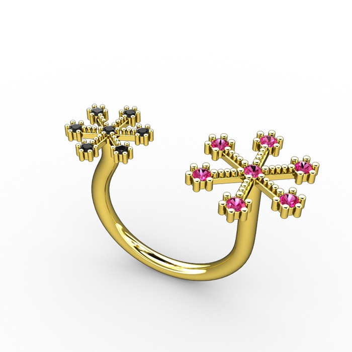 Rodolit garnet ve siyah zirkon 14 ayar altın yüzük