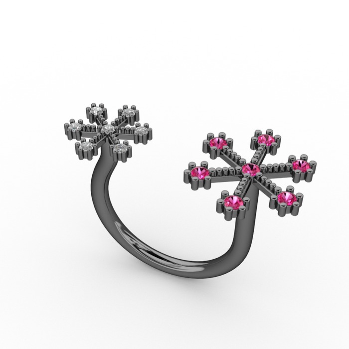 Rodolit garnet ve swarovski 925 ayar siyah rodyum kaplama gümüş yüzük